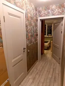 Белая глухая в коридор. Подошла под наш интерьер, смотрится чисто и опрятно