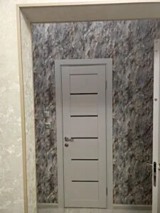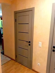 Полипропилен под эмаль - интересное решение, выглядит как крашеная дверь. Нардо грей в коридоре смотрится сдержанно и со вкусом.