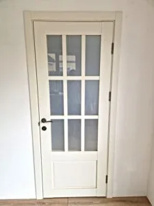 Сборные межкомнатные двери с ПВХ покрытием производятся Дрим Дорз по технологии бесстыкового нанесения плёнки ПВХ. Таким образом, все края плёнки оказываются внутри пазов соединения деталей. Это обеспечивает возможность установки дверей в ванную комнату и большой срок эксплуатации дверей.