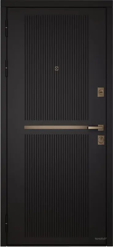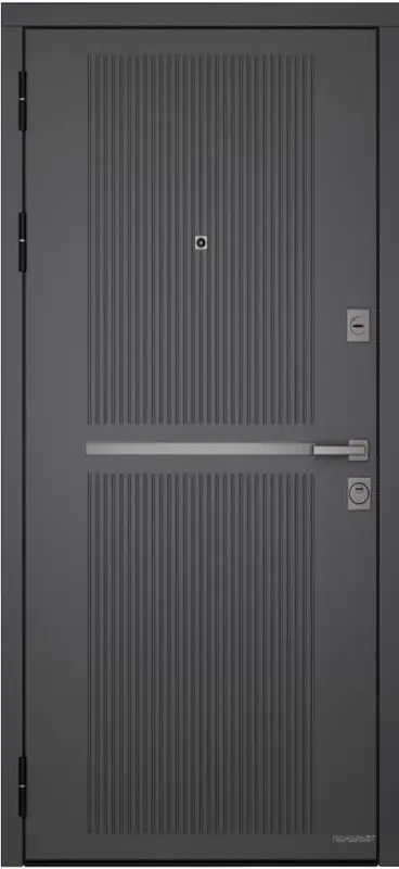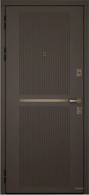 Двери отличаются оригинальной конструкцией, продуманной до мелочей. Цельногнутое дверное полотно. Усиленный лонжерон замка во всю высоту полотна. Профиль усиления на петлевой стороне. Производятся на суперсовременной линии Salvagnini. Соответствуют ГОСТ 31173-2003 «Блоки дверные стальные» по надежности и взломостойкости. Дверные блоки предназначены для установки в качестве входных дверей в жилые помещения. Укомплектованы всей необходимой фурнитурой.