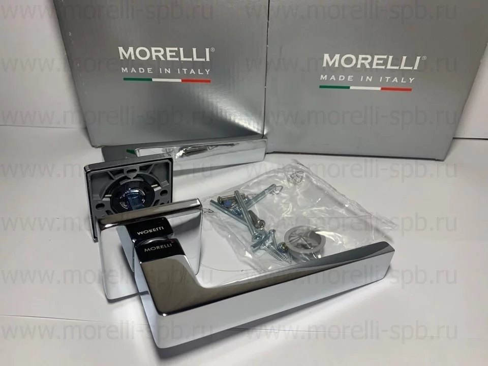 Комплект ручек на 1 дверь (2 шт.) + крепеж четырехгранный стержень, саморезы, стяжные винты, инструкция по монтажу.