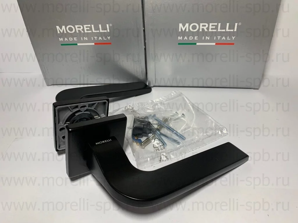 Комплект ручек на 1 дверь (2 шт.) + крепеж четырехгранный стержень, саморезы, стяжные винты, инструкция по монтажу.